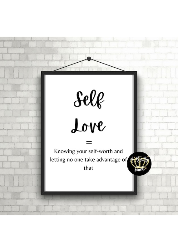 Self Love Saying Wall Art, Love Quote, White Black Self Worth