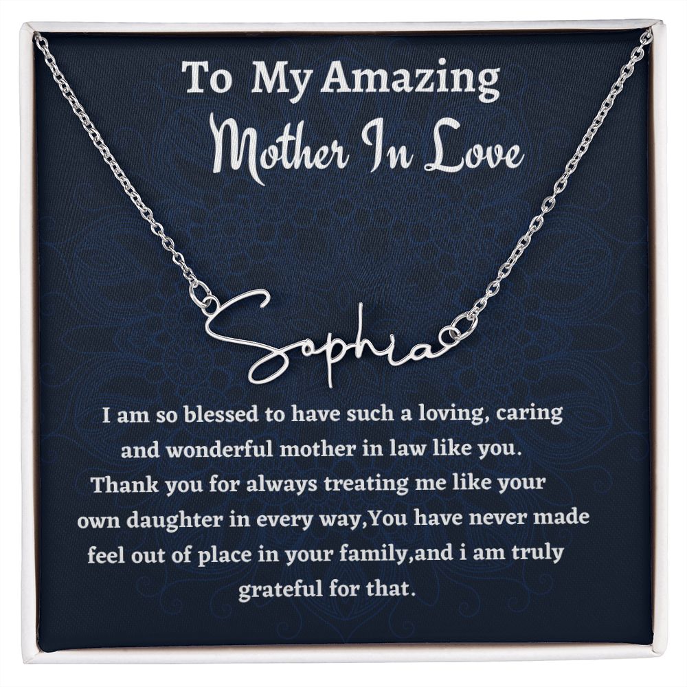To My Amazing Mother In Love Signature Style Necklace, Birthday